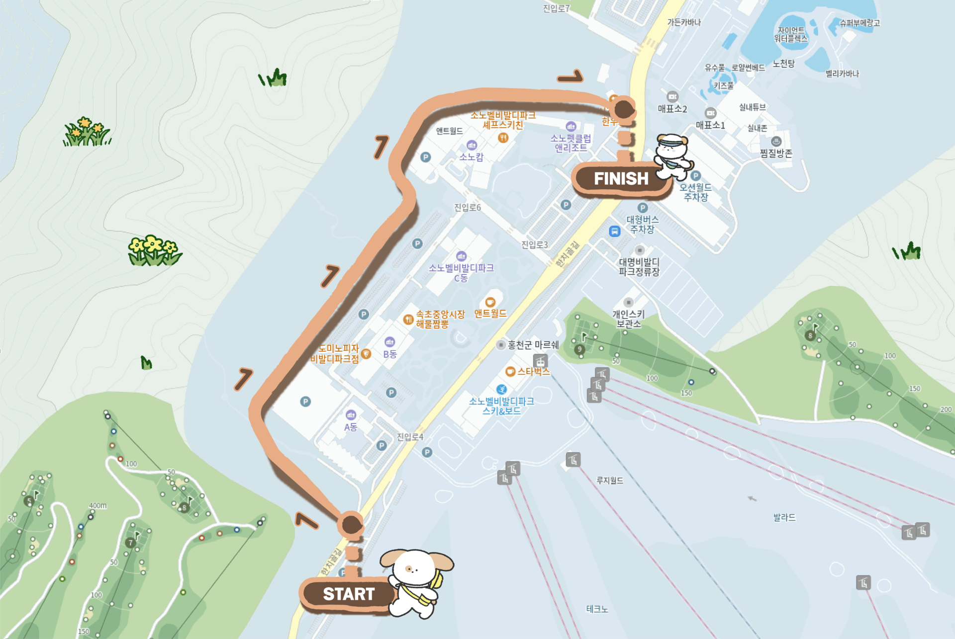 코스비발디파크 A동(START) → 소노펫클럽앤리조트(FINISH)